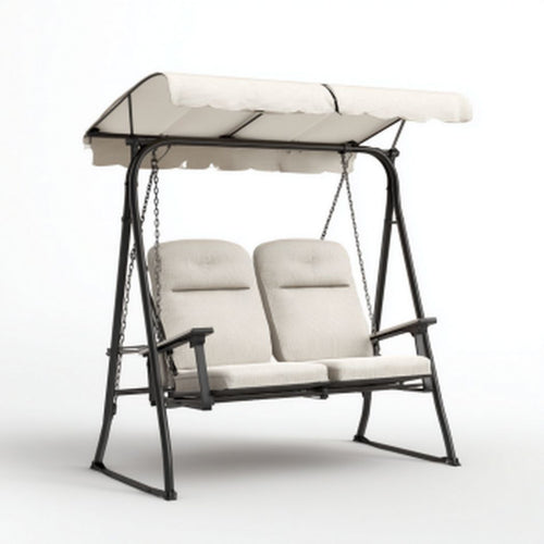 Huśtawka ogrodowa z dachem, przeznaczona do użytku na zewnątrz, stalowa rama, tkanina poliestrowa - 150 x 100 x 160