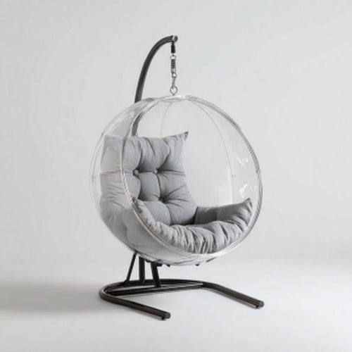 Fotel wiszący z przezroczystym siedziskiem i metalową podstawą - 90 x 90 x 120