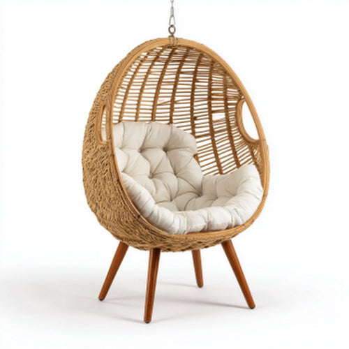 Fotel wiszący z rattanu do relaksu w ogrodzie z poduszką - 75 x 75 x 120